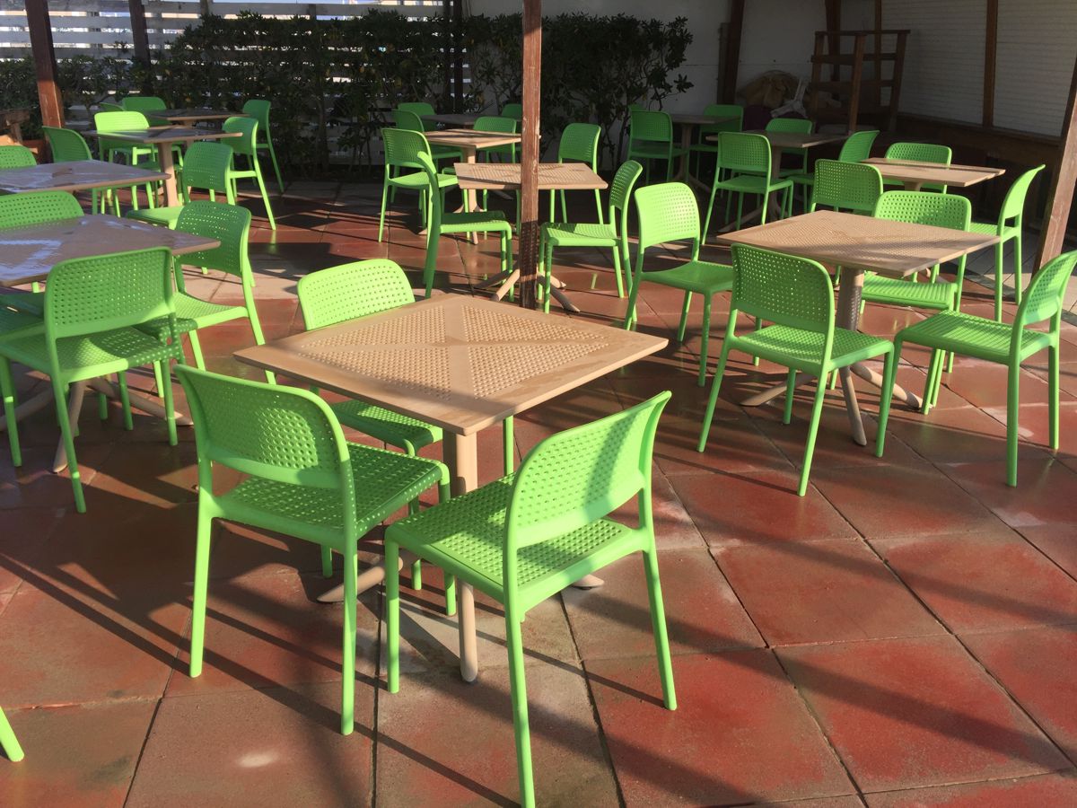 Надежная и прочная мебель с простым и элегантным дизайном. Стулья стопируются и не занимают много места и их легко хранить до нужного времени.